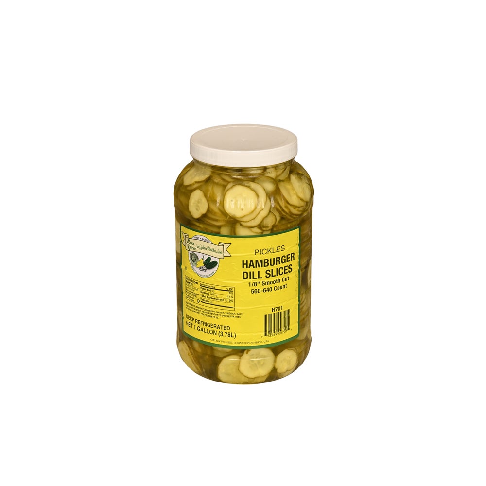 Cool Crisp Hamburger Sliced Dill Pickles, 1/8 Inch, Refrigerated, 1 Gal, 4/Case