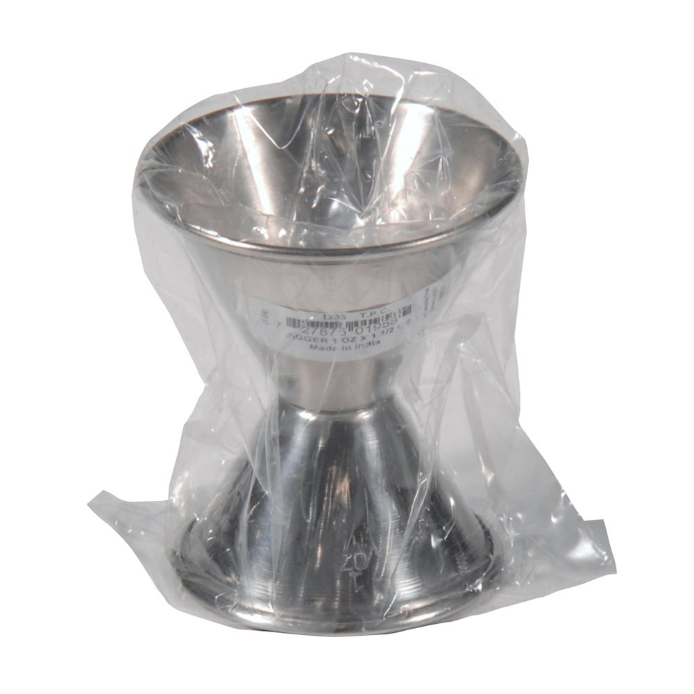 Invaluable to any bartender, this stainless steel jigger is a 2-sided measuring tool with a 1 ounce cup on one side, and a 1.5 ounce cup on the other.