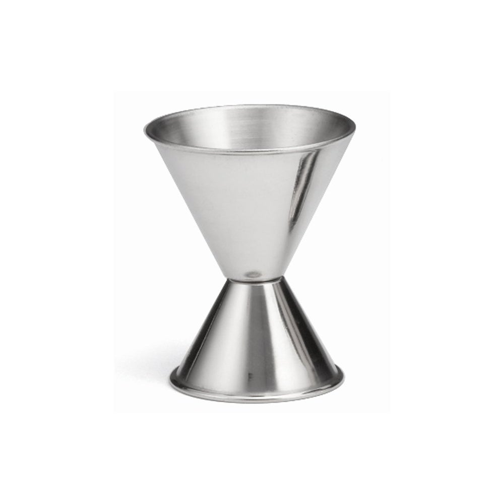 Invaluable to any bartender, this stainless steel jigger is a 2-sided measuring tool with a 1 ounce cup on one side, and a 2 ounce cup on the other.