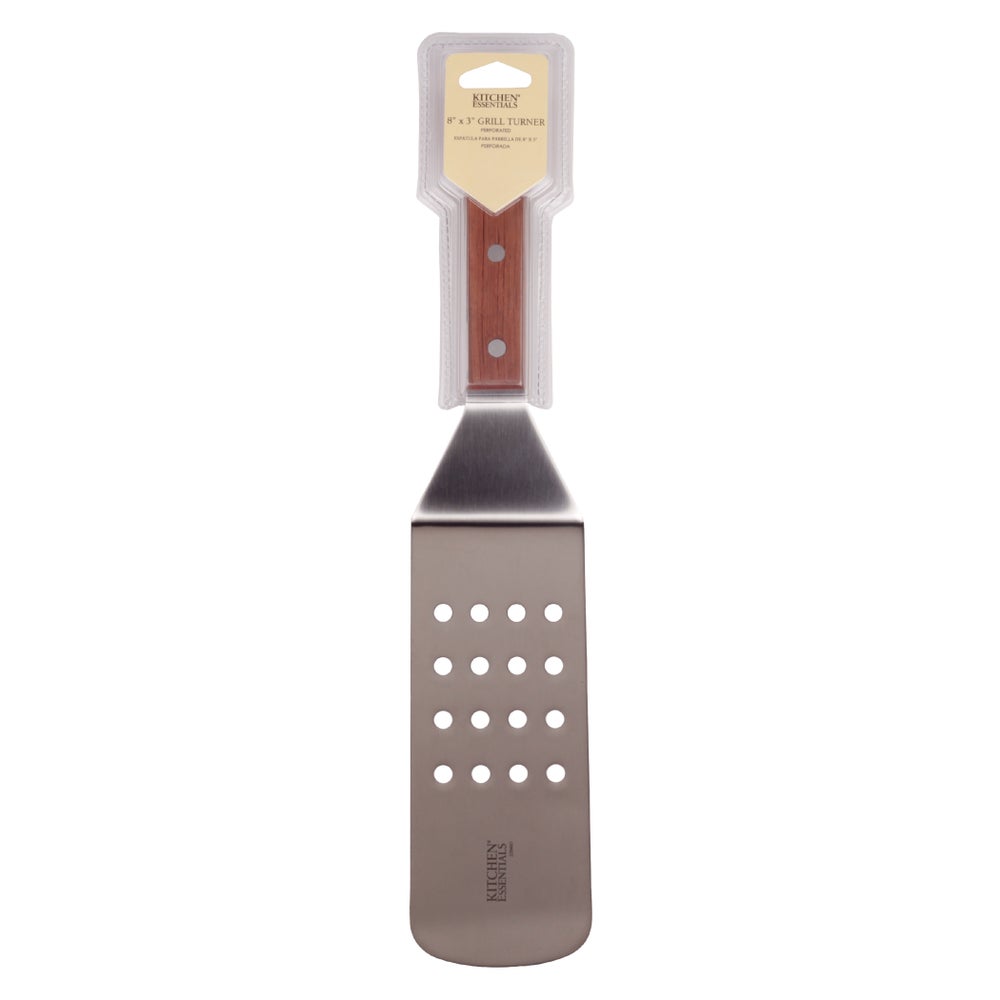 - Crafted from superior Asian stainless steel, this 8 x 3 inch perforated blade grill turner is a reliable multipurpose tool. Its long handle and flexible blade make it ideal for high heat applications.