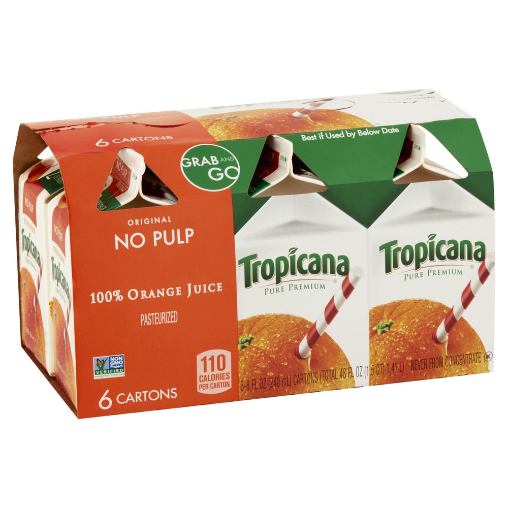 Tropicana No Pulp Premium Orange Juice, Pure, 6 Ct Package, 4/Case