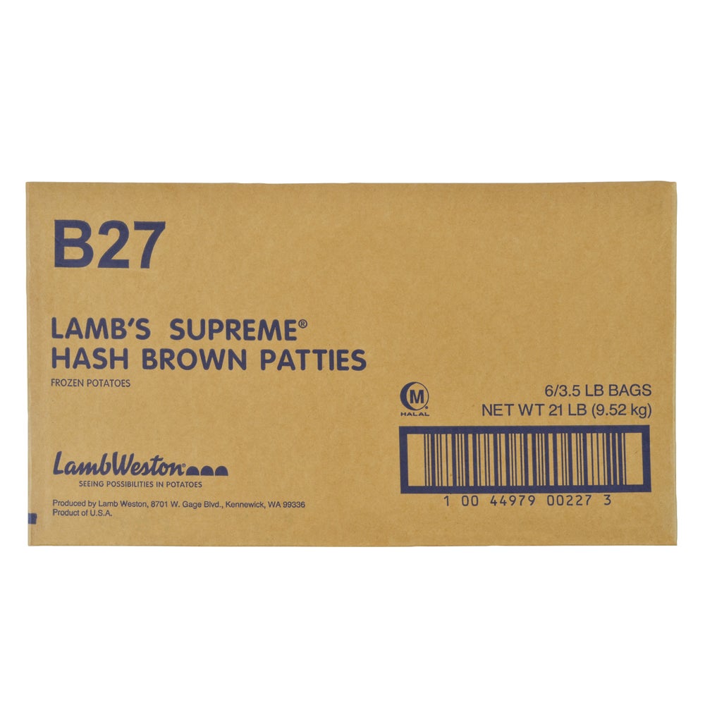 Lamb's Supreme Patty Hash Browns, Seasoned, IQF, 3.5 Lb Package, 6/Case