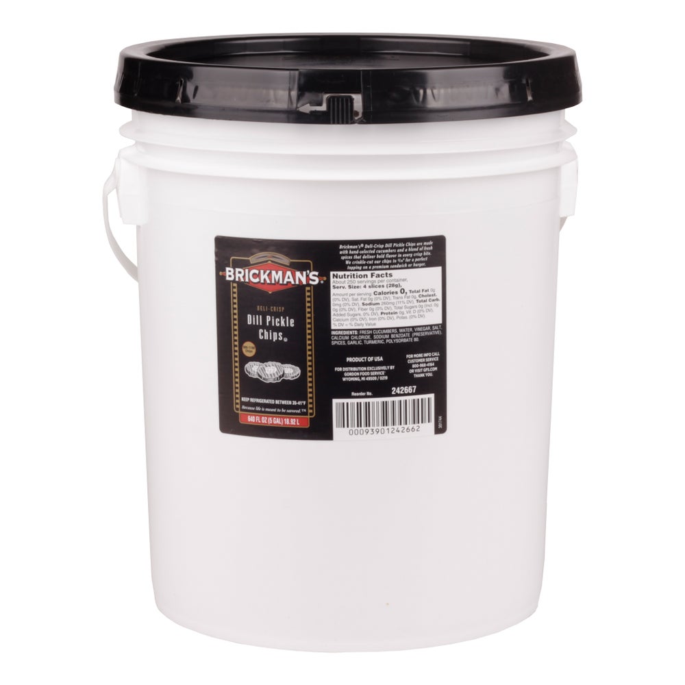 Brickman's Crinkle-Cut Kosher Dill Pickle Chips, 1000-1100 Count, 5/16 Inch, Refrigerated, Plastic, 5 Gal, 1/Pail