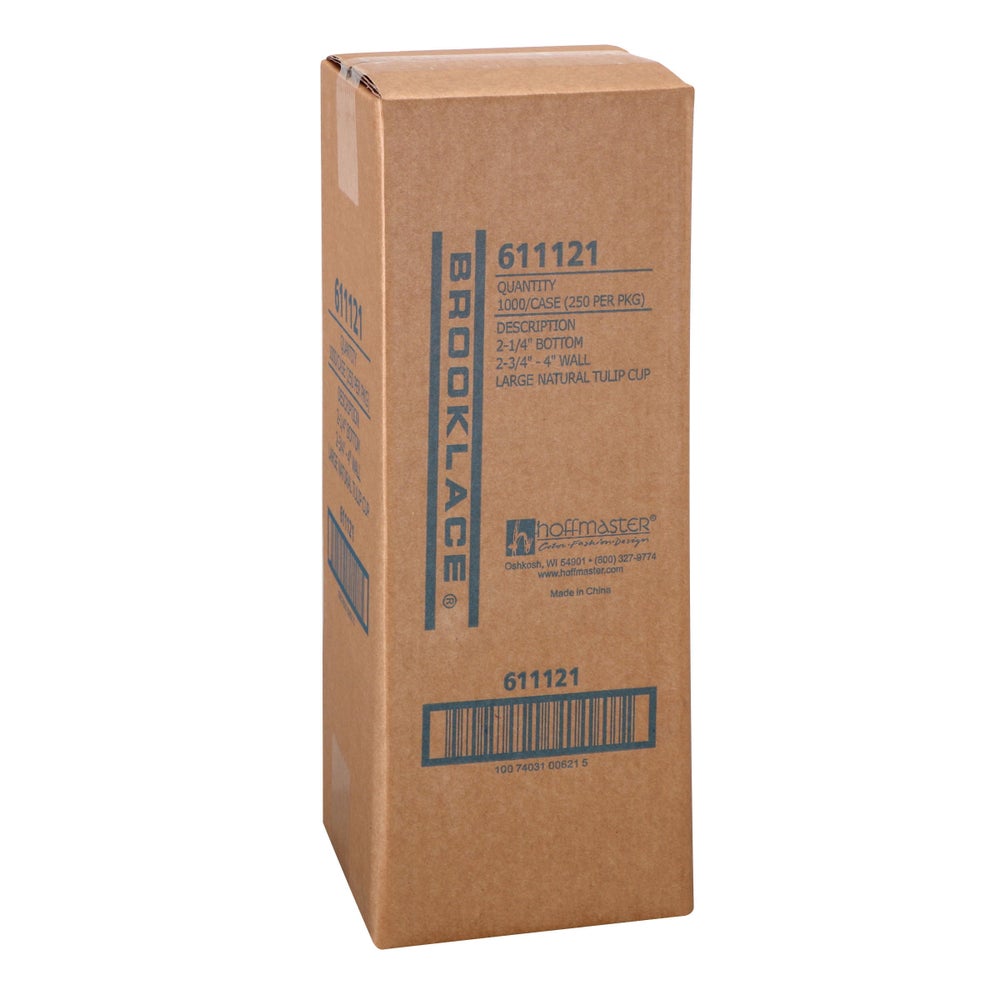 Brooklace 2.25 x 2.75 x 4 Inch Large Greaseproof Paper Tulip Cups, Natural, for Muffins & Cupcakes, 250 Ct Package, 4/Case