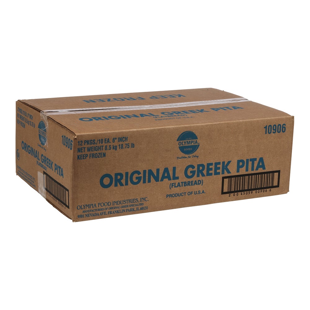 Olympia Foods 6 Inch Pita Bread, Frozen, 10 Ct Bag, 12/Case