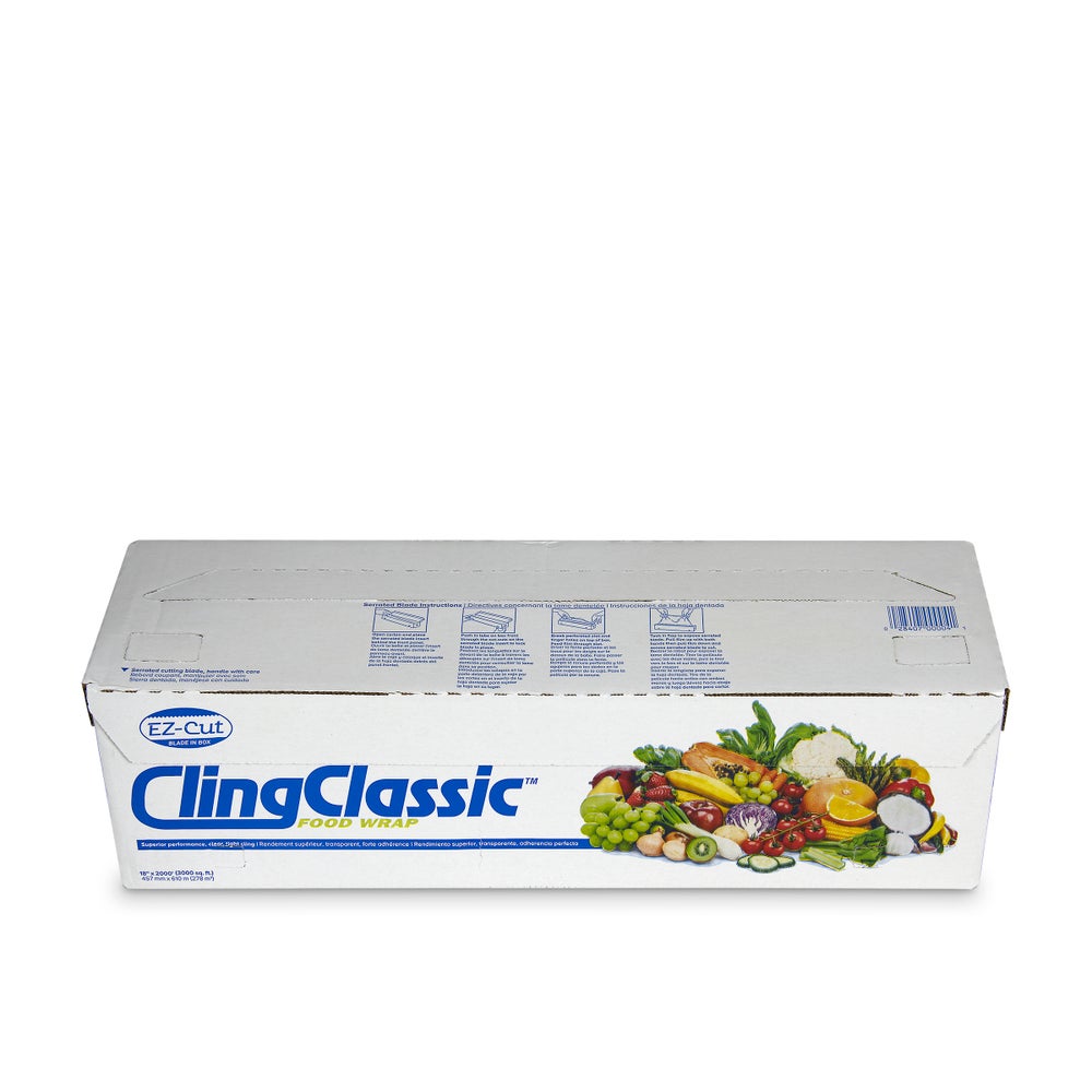 Cling Classic 18 Inch Cling Wrap Film Roll, Clear, in Cutter Box, 2000 Foot Roll, 1/Case