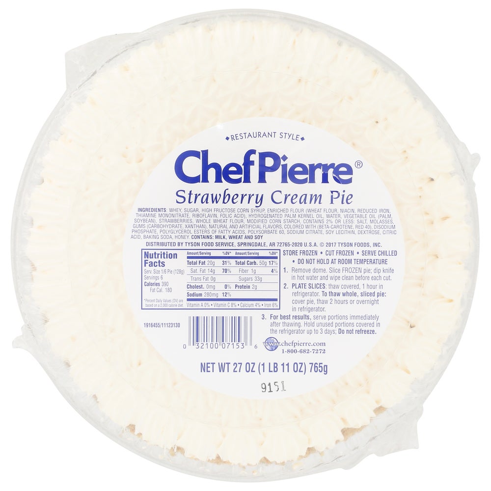 Chef Pierre 10 Inch Strawberry Cream Pies, Frozen, 10 Inch Each, 6/Case