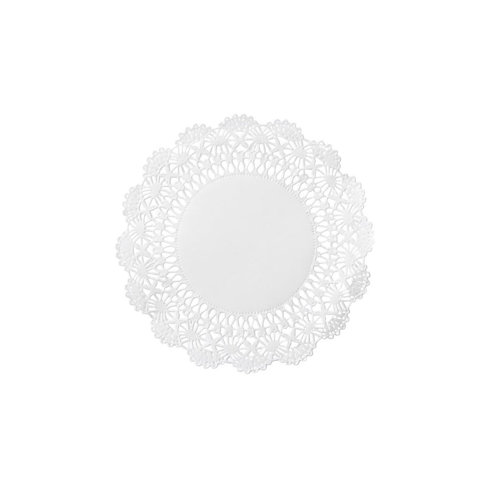 These doilies add a touch of elegance to a variety of table settings. The bright white design highlights a classic and versatile Cambridge lace pattern. Each doily is ideal for use as an underliner for desserts, soups or in displays.