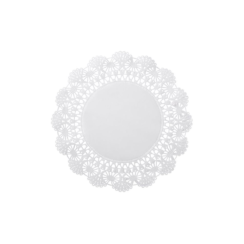 These doilies add a touch of elegance to a variety of table settings. The bright white design highlights a classic and versatile Cambridge lace pattern. Each doily is ideal for use as an underliner for desserts, soups or in displays.