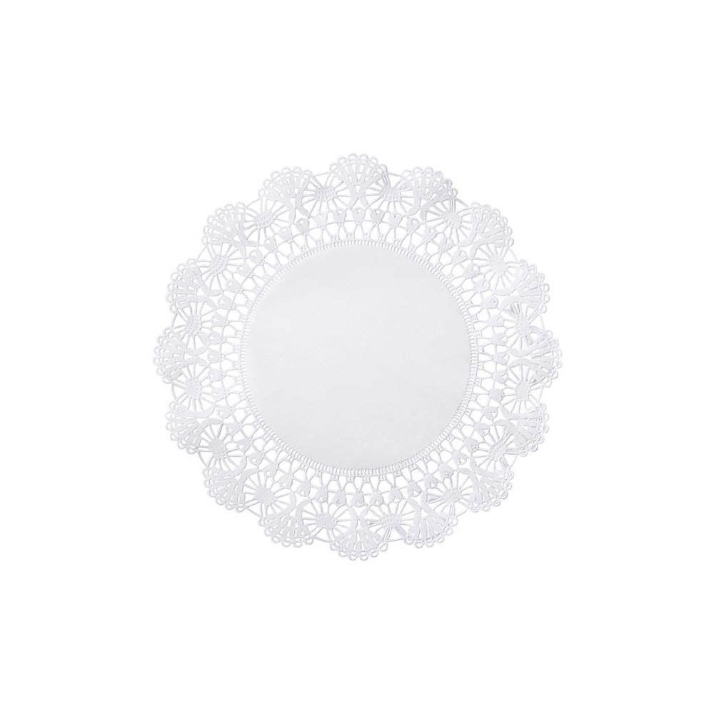 These doilies add a touch of elegance to a variety of table settings. The bright white design highlights a classic and versatile Cambridge lace pattern. Each doily is ideal for use as an underliner for desserts, soups or in displays.