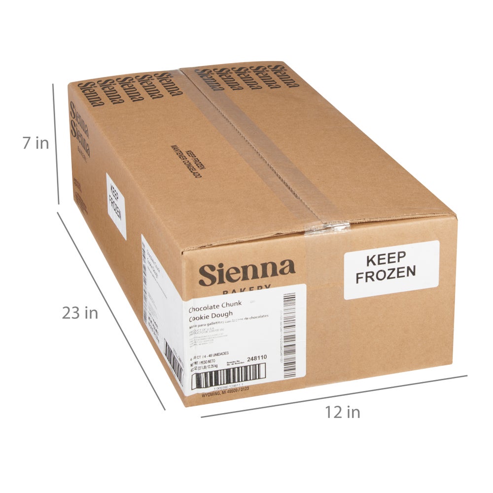 Sienna Bakery Chocolate Chunk Cookie Dough, Frozen, 2.25 Ounce, 48 Ct Box, 4/Case