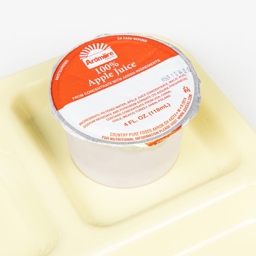 These apple juice cups are made with 100 percent juice.