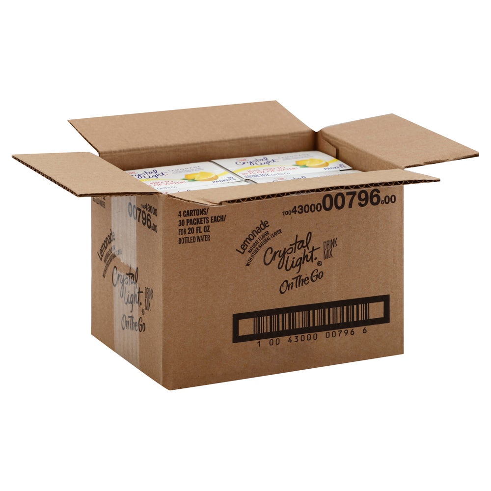 Crystal Light Powdered Sugar-Free Lemonade Drink Mix, Single-Serve, Shelf-Stable, 30 Ct Box, 4/Case