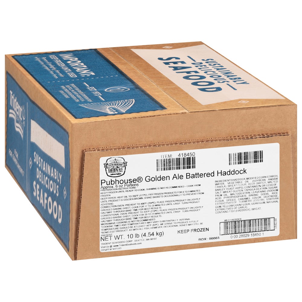Made with a real beer batter, these Haddock fillets offer a light crunchy texture that looks and tastes like homemade. Made with wild-caught, boneless, skinless, chemical-free Haddock, these battered portions provide a clean, mild flavor.