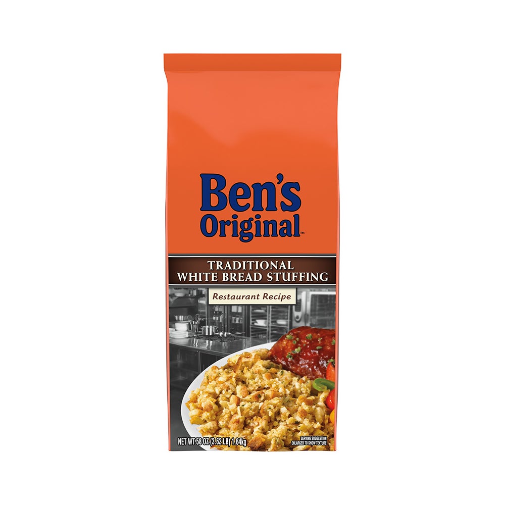 - Ben's Original brand Traditional White Bread Stuffing Mix is a quintessential stuffing mix for menu applications! Quick and easy to make, just simply add hot water for consistently moist stuffing every time.