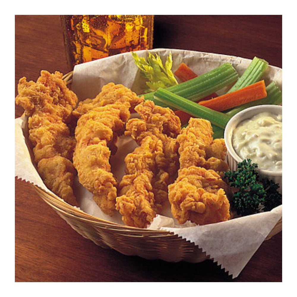 These whole muscle, chicken strips have a crispy breading profile, making them ideal for appetizers, salads, wraps, and more.