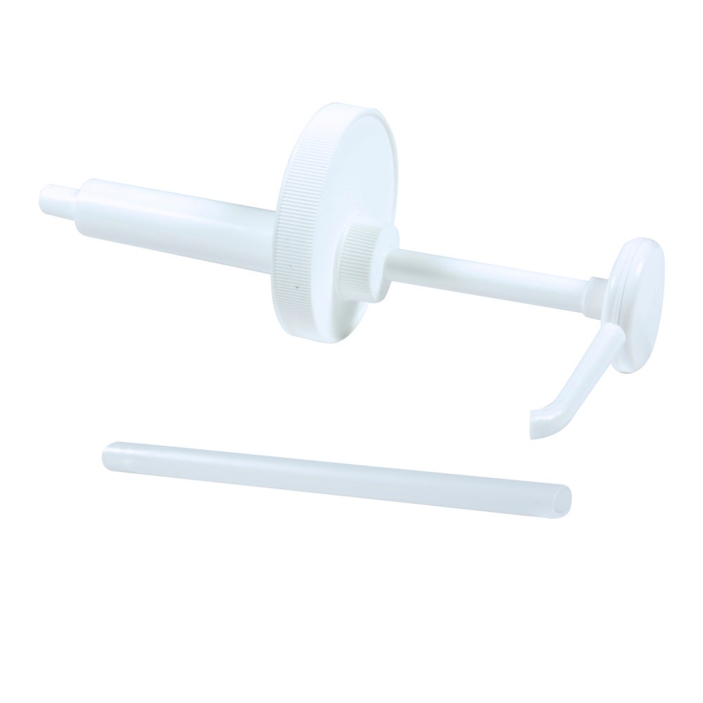 This plastic dispensing pump has removable caps without the calibrated plunger and can be used with grit and pumice substances.