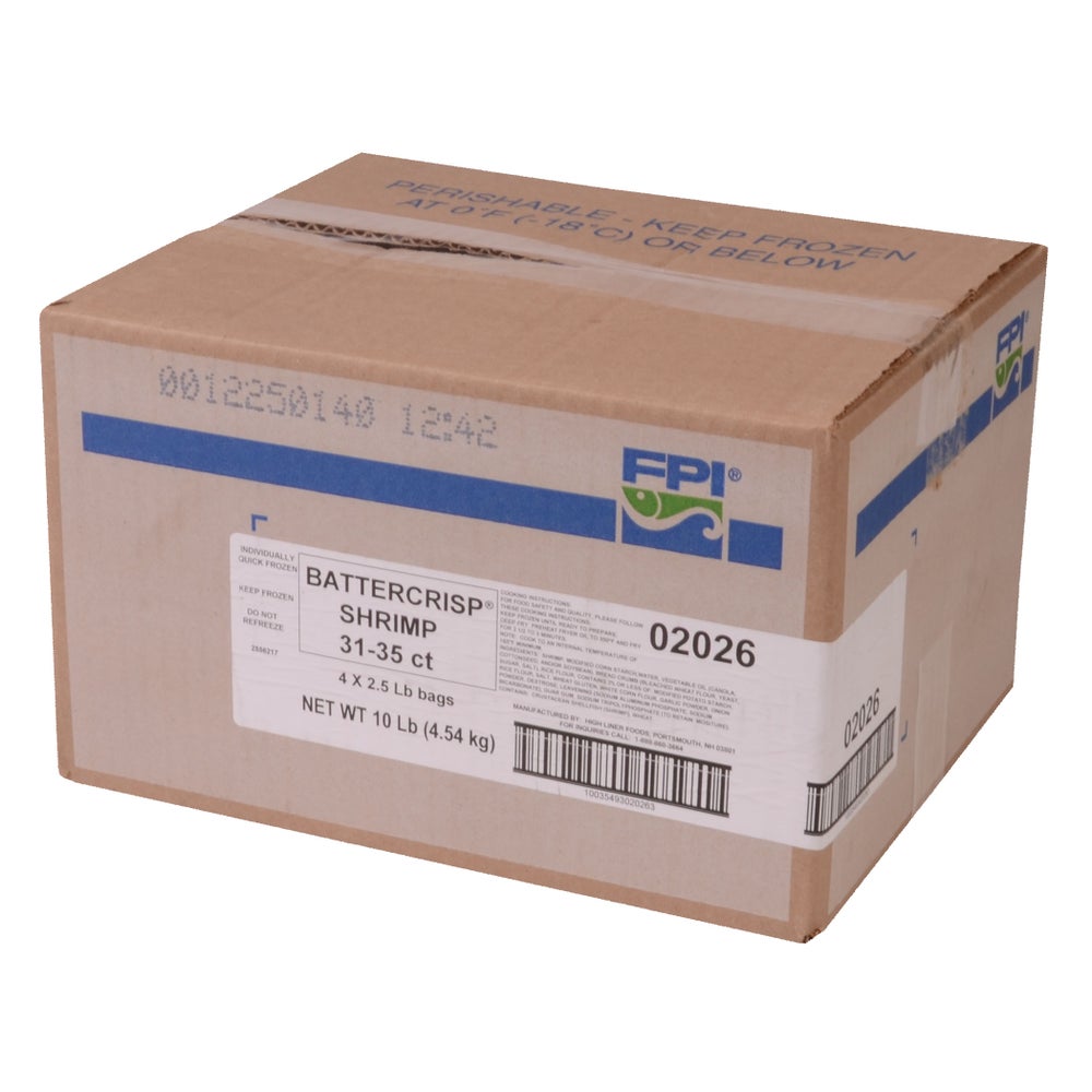 FPI Crispy Battered Shrimp, Tail-Off, 28-35 Count per Pound, Raw, Frozen , 2.5 Lb Bag, 4/Case