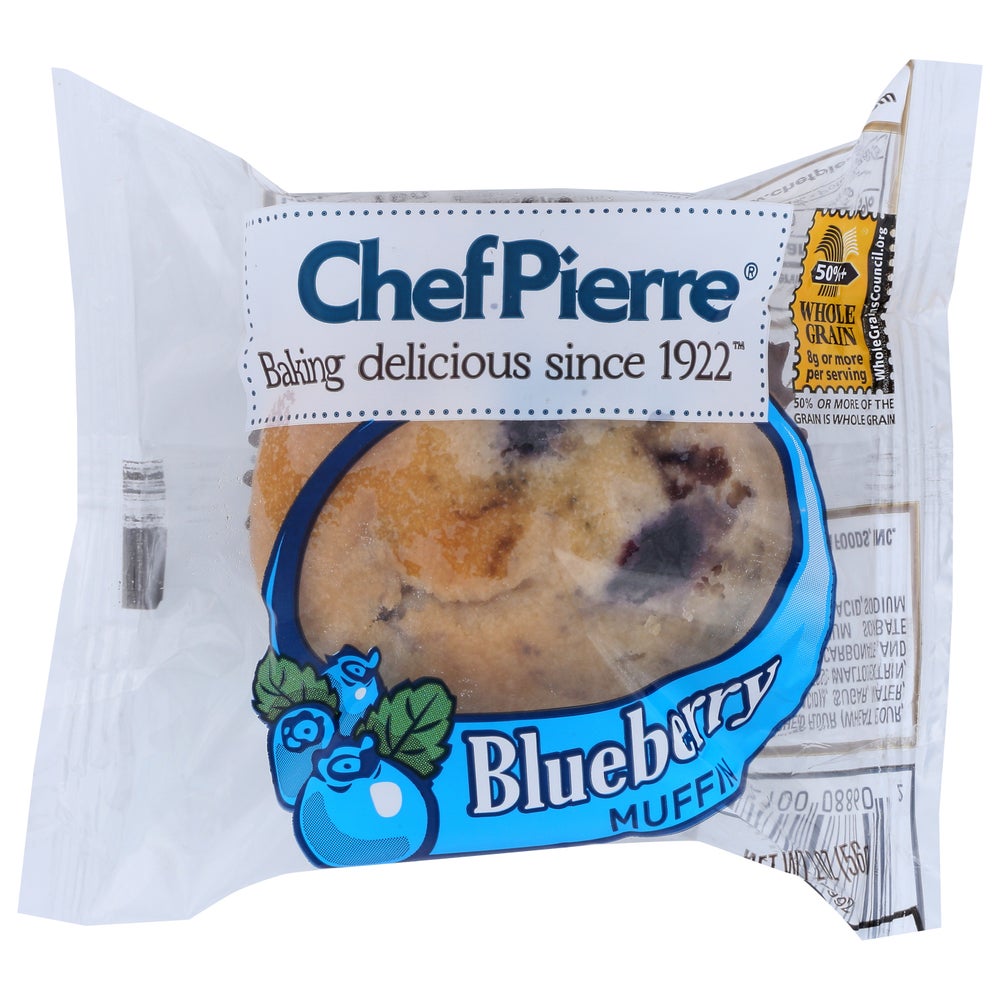 Chef Pierre Whole Grain Blueberry Muffin, Frozen, Individually Wrapped, 2 Ounce, 1 Ct Package, 48/Case