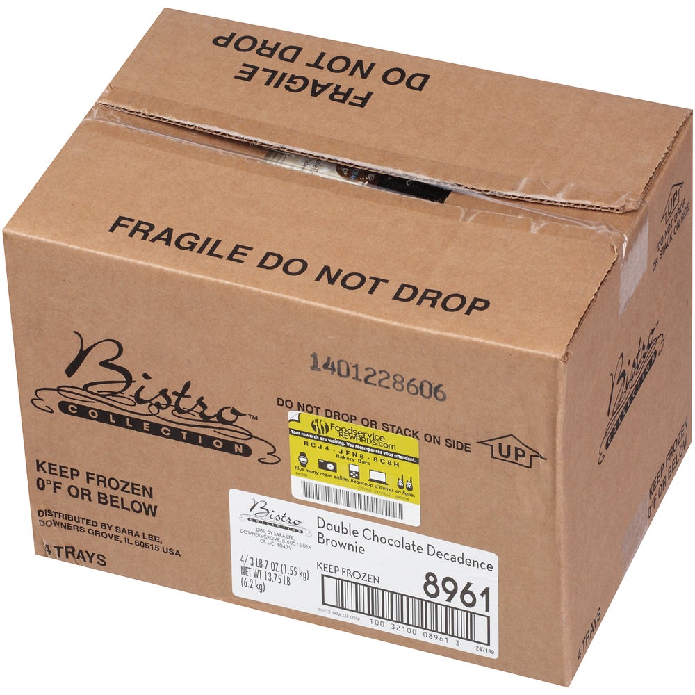 Bistro Collection Ghiradelli Double Chocolate Brownie, Unsliced, Uniced, Frozen, 55 Oz Tray, 4/Case