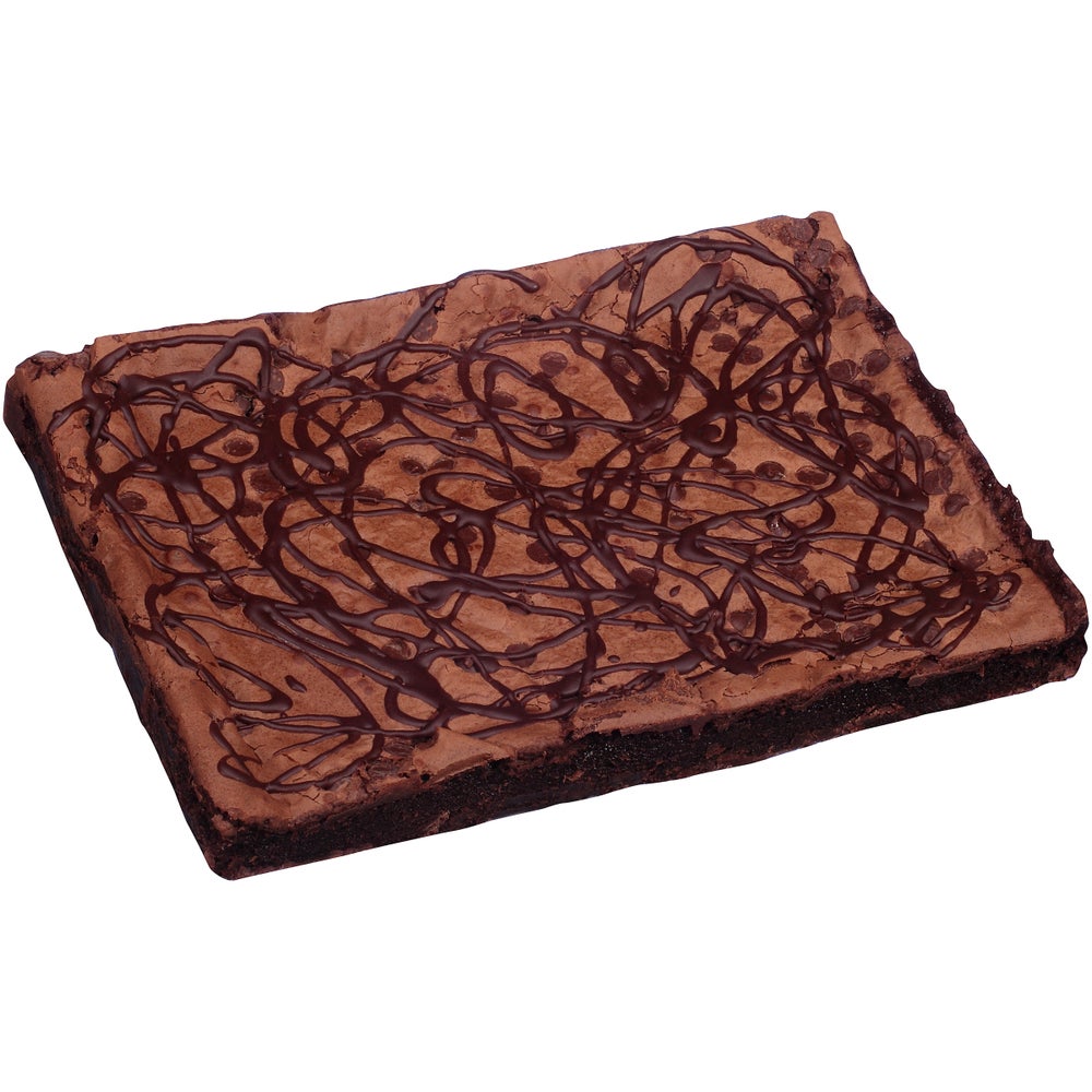 These brownie bars start with a rich chocolate base, topped with Ghirardelli chocolate chips, and a drizzle of Ghirardelli dark chocolate.