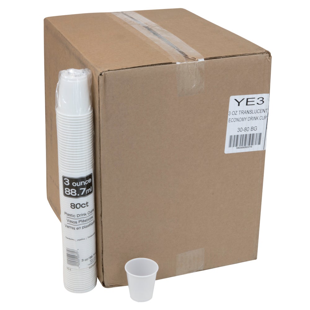 Cups, Sampling, 3 Ounce, Plastic, Translucent, Polystyrene, 80 Ct Package