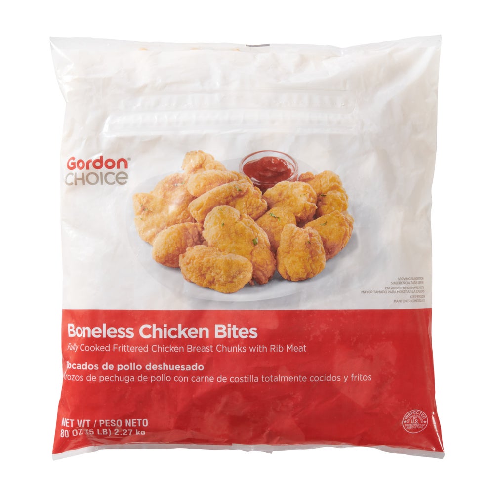 Gordon Choice Fritter Breaded Boneless Chicken Wings, Breast Meat, Fully Cooked, Frozen, 5 Lb Bag, 2/Case