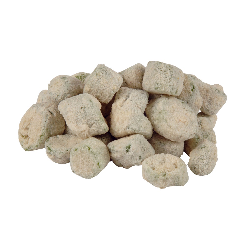 This cut okra is lightly battered and then dusted with a corn and wheat flour before being parfried. Consistent in size, it is a unique substitution for french fries and can also be served as an appetizer. Brand may vary.