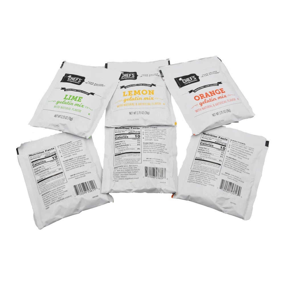 Sweetened with Splenda, this assortment of gelatin mix includes six fat-free packages each of lemon, lime, and orange flavors. Serve plain, with fruit, or in a salad recipe for a light dessert without any aftertaste.
