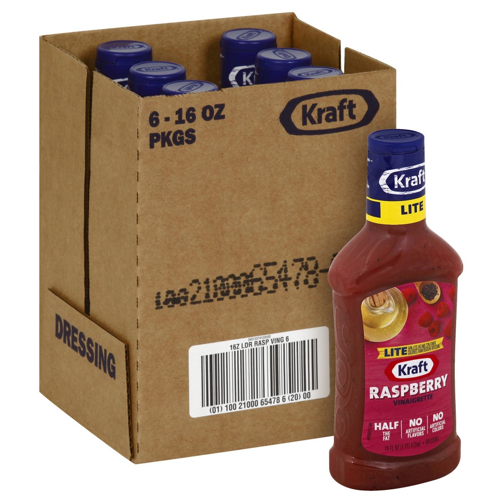 Kraft Lite Raspberry Vinaigrette Dressing, Salad, 16 Oz Package, 6/Case