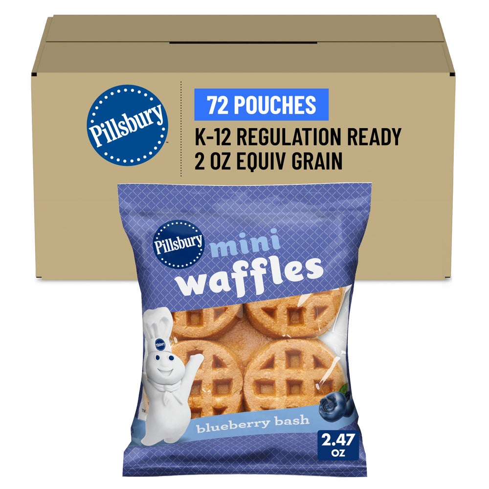Pillsbury Whole Grain Mini Blueberry Waffles, Frozen, Individaully Wrapped, 2.47 Oz Bag, 72/Case
