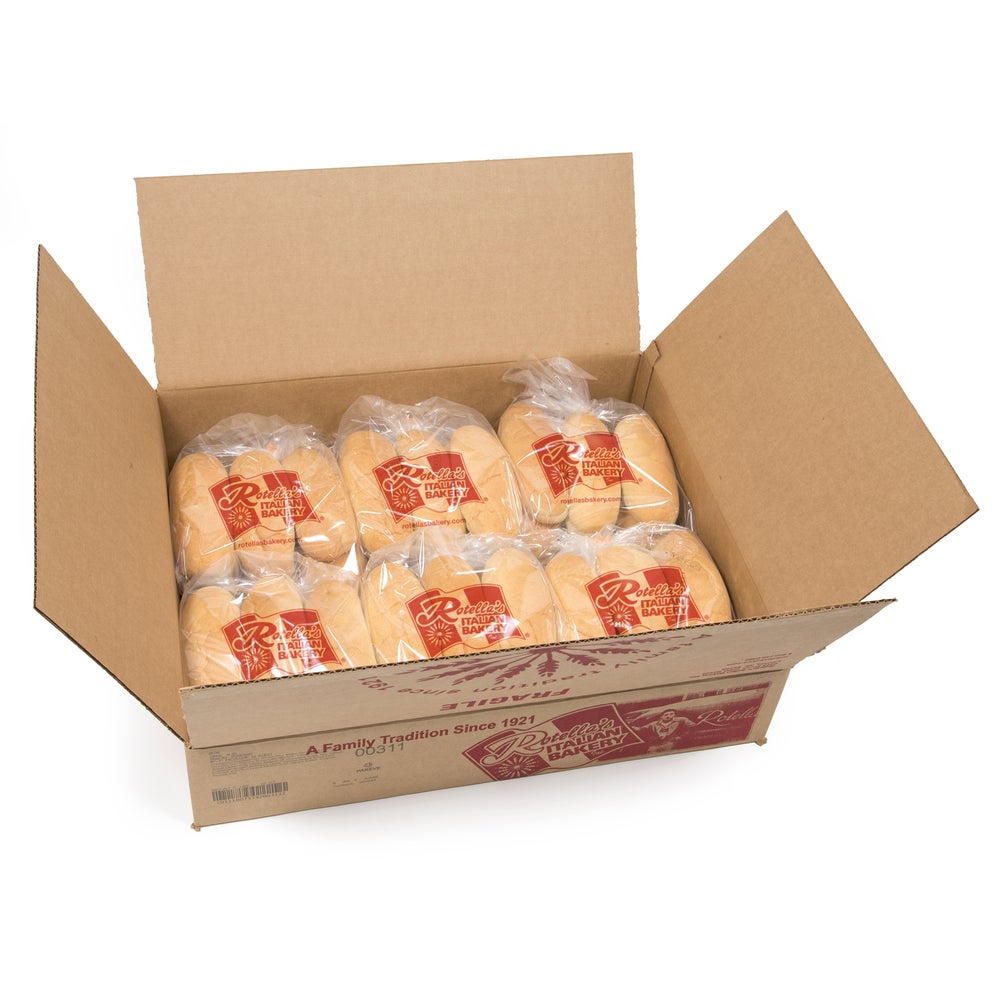 Rotella's Italian Bakery 6 Inch White Hoagie Rolls, Hinge Sliced, Frozen, 6 Ct Package, 6/Case