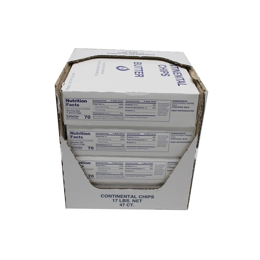 - Individual foil wrapped continental butter chips allow for easy portion control without additional waste or labor.