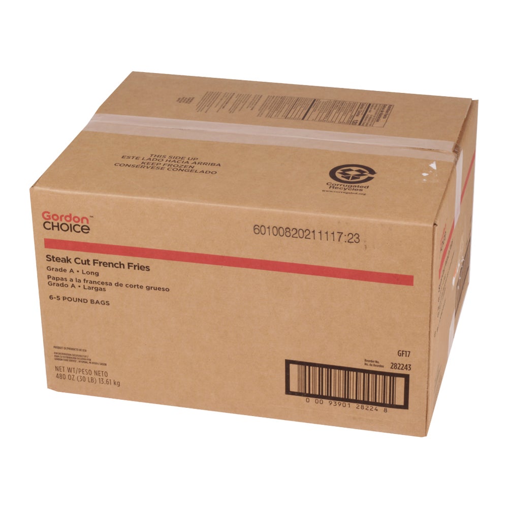 • Each case contains five, five-pound packages of steak cut french fries.