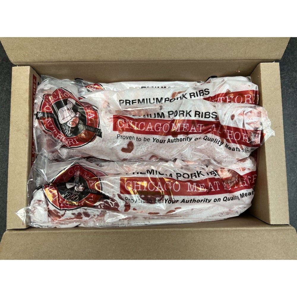 Chicago Meat Authority Pork Back Ribs, 2-1/4 Pounds & Down per Rack 14 Pieces per Case, Skinned, Square Ends, (NAMP 422) Frozen, 2.14 Lb Avg Package, 14/Case
