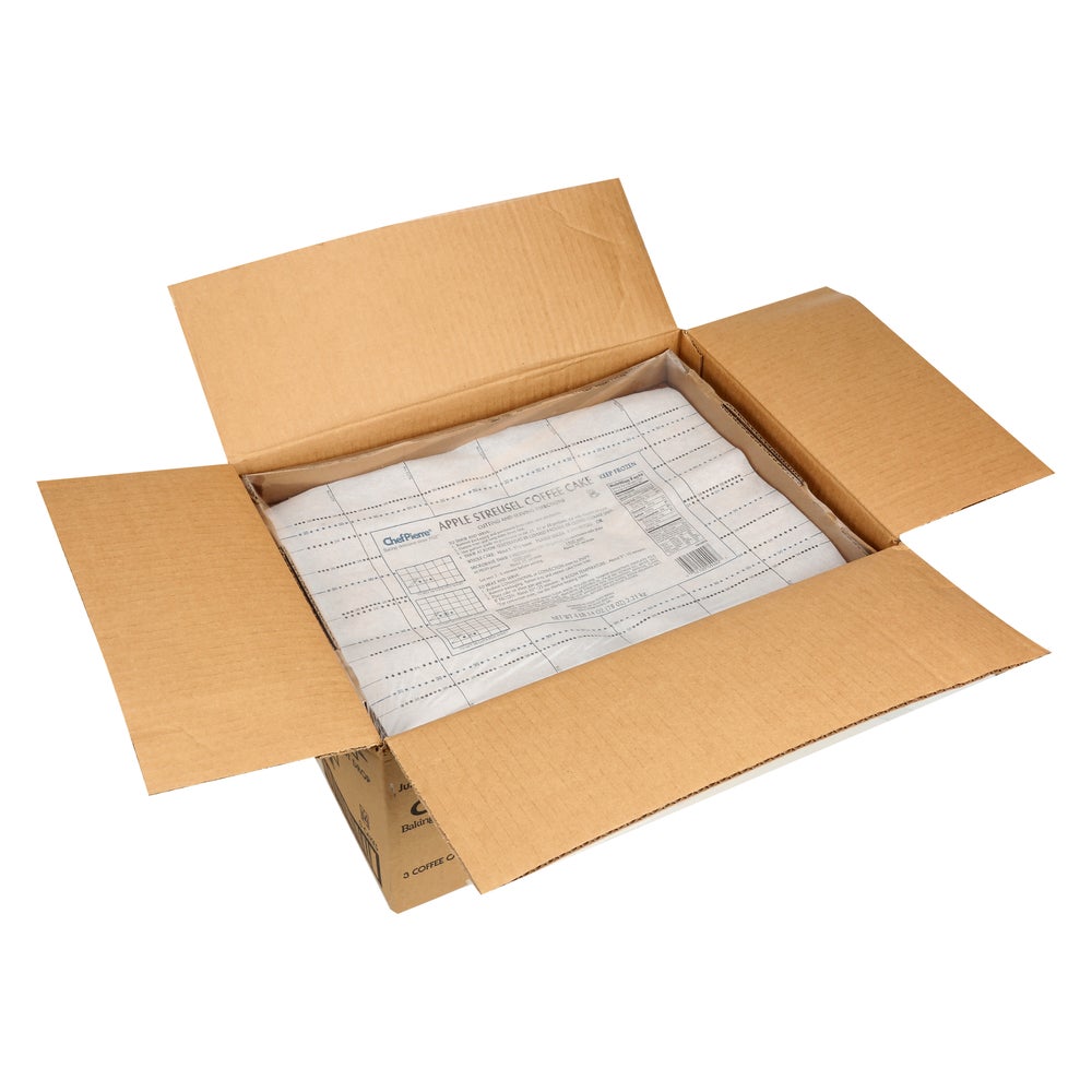These coffee cakes are packed with grade A apple chunks and US #1 California walnuts then topped with toasted sweet streusel crumbs. They are ideal for buffets and catering and contain a portion guide for easy use.