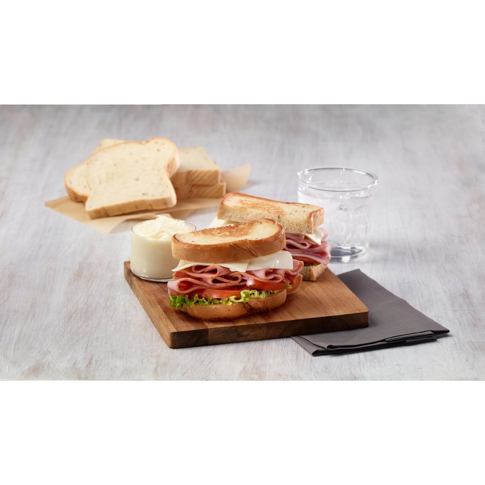 - Start your sandwhiches off right with the great flavor of hickory-smoked, sliced ham. This hickory-smoked sliced ham is a four-muscle, close-trimmed ham. This means the inside, outside, knuckle and shank are trimmed of all external fat and put together, resulting in a very lean ham for your plate.