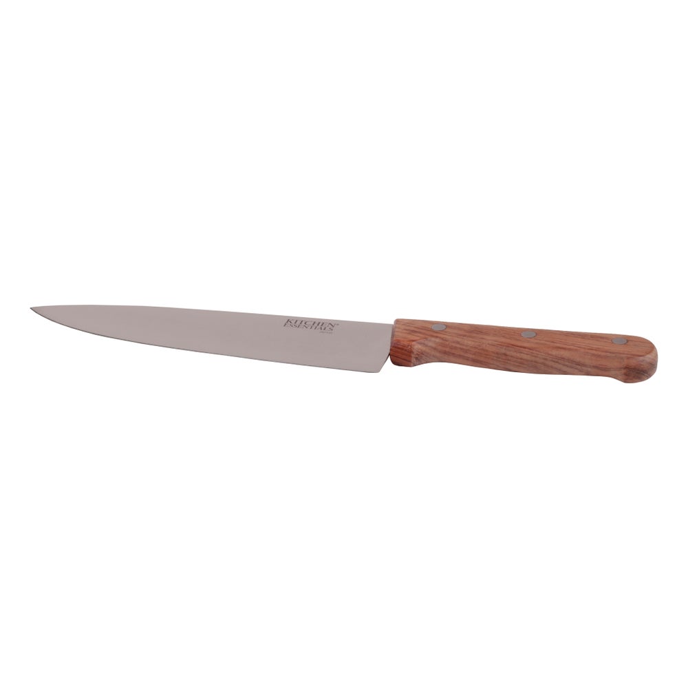 - This handy and versatile eight-inch chef's knife with a razor edge is ideal for numerous applications. It boasts an attractive wooden handle.