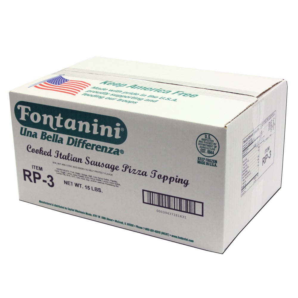 Fontanini Spicy Italian Chunks Sausage, 7-9 Count per Ounce, Cooked, Frozen, 5 Lb Each, 3/Case