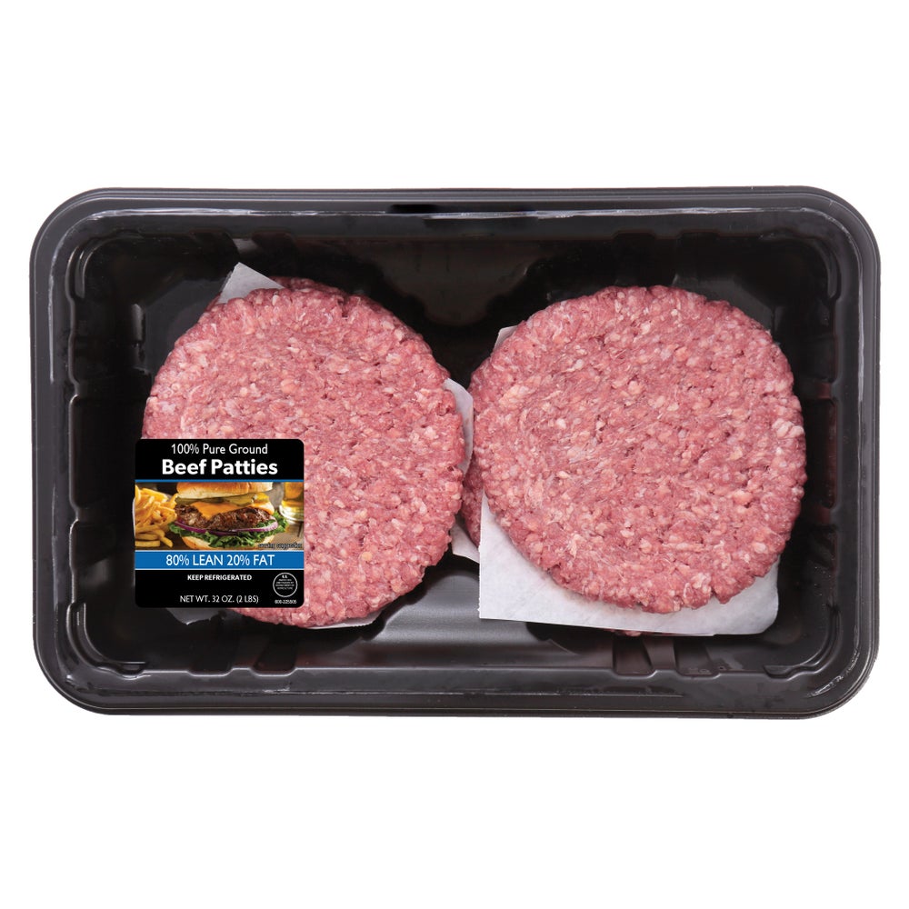 JBS 80% Lean 4 Ounce Ground Beef Patties, Fresh, 8 Ct Tray, 6/Case