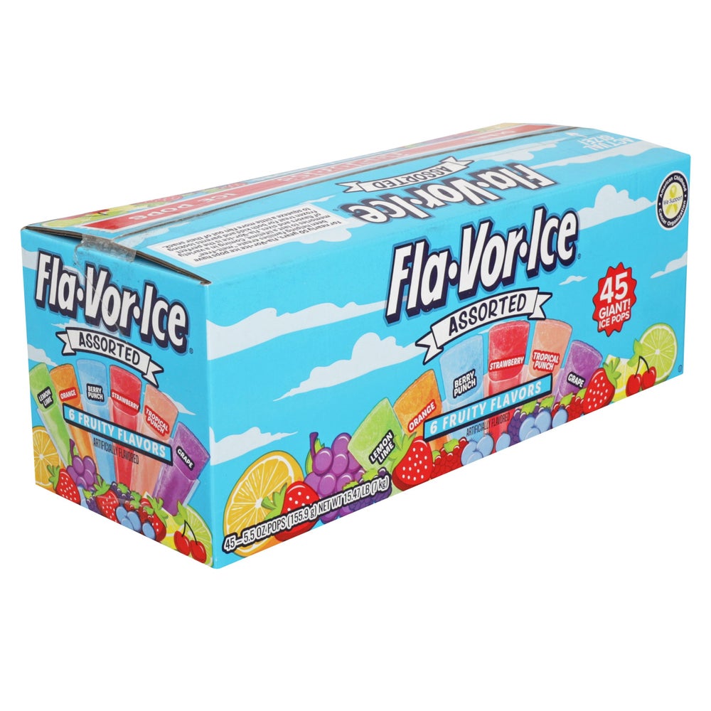Fla-Vor-Ice Popsicles, Assorted, Individually-Wrapped, Shelf-Stable, 5.5 Oz Each, 45/Case