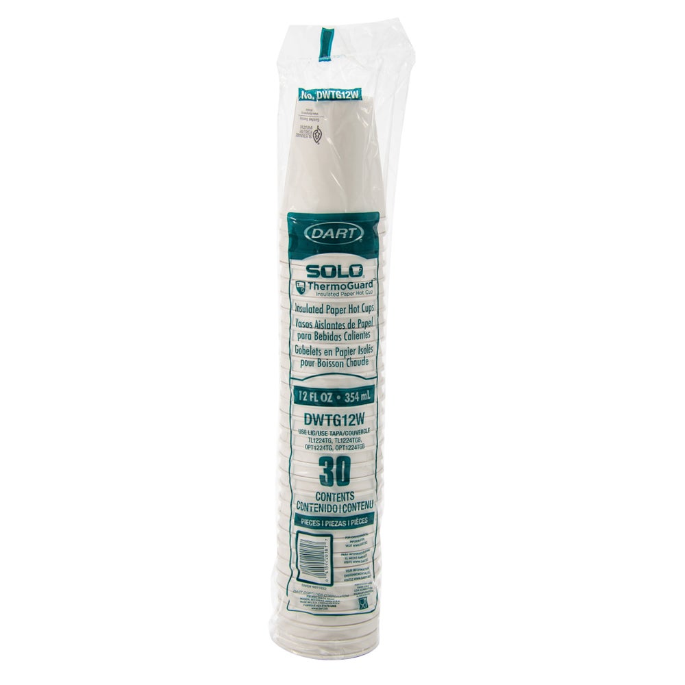 Dart ThermoGuard 12 Ounce Paper Hot Cups, White, Insulated, 12 Ounce, 30 Ct Package, 20/Case