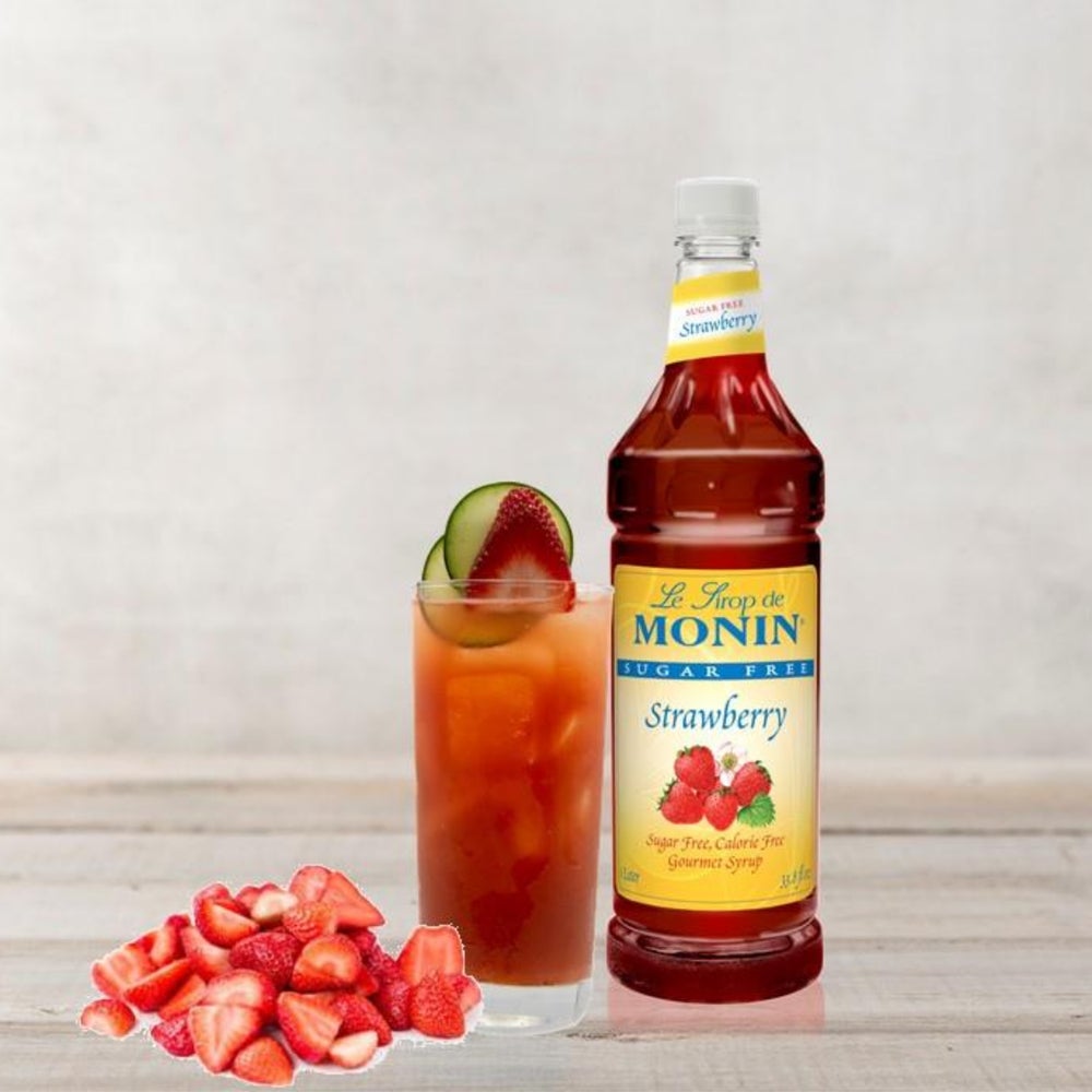 Monin Sugar-Free Strawberry Beverage Syrup, Plastic, 1 Ltr, 1/Each