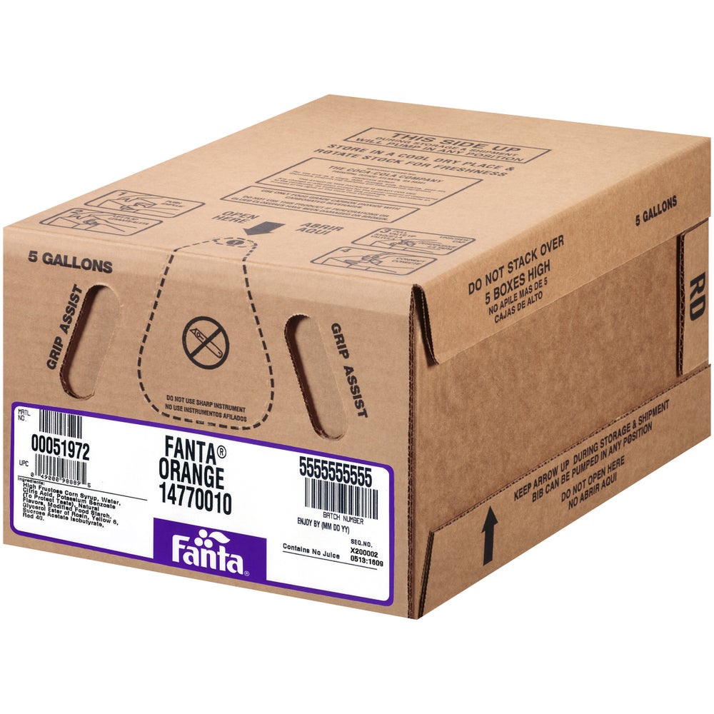 Fanta Orange Soft Drink Syrup, 5 to 1 Ratio, Bag-in-Box, 5 Gal, 1/Box