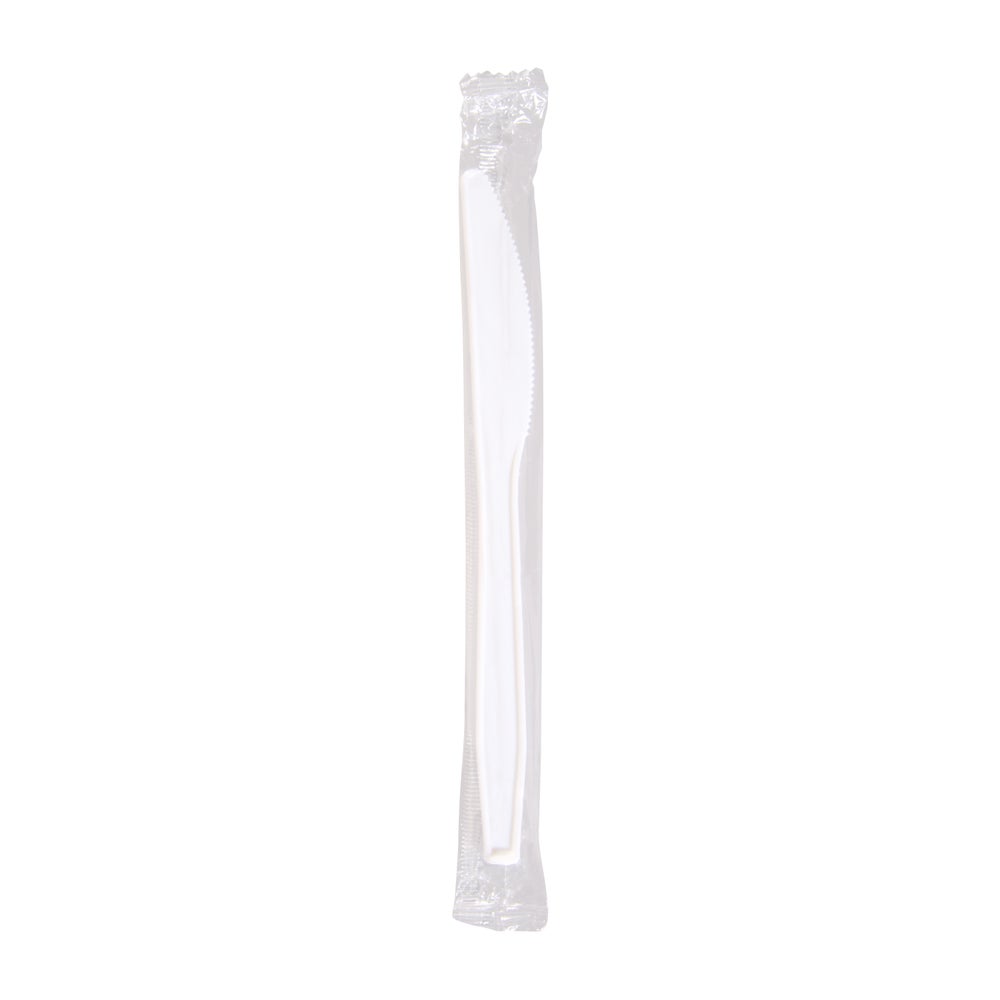 Kitchen Essentials Medium-Weight Plastic Knives, White, with Medium-Length Handles, Individually Wrapped, Polypropylene, 1000/Case