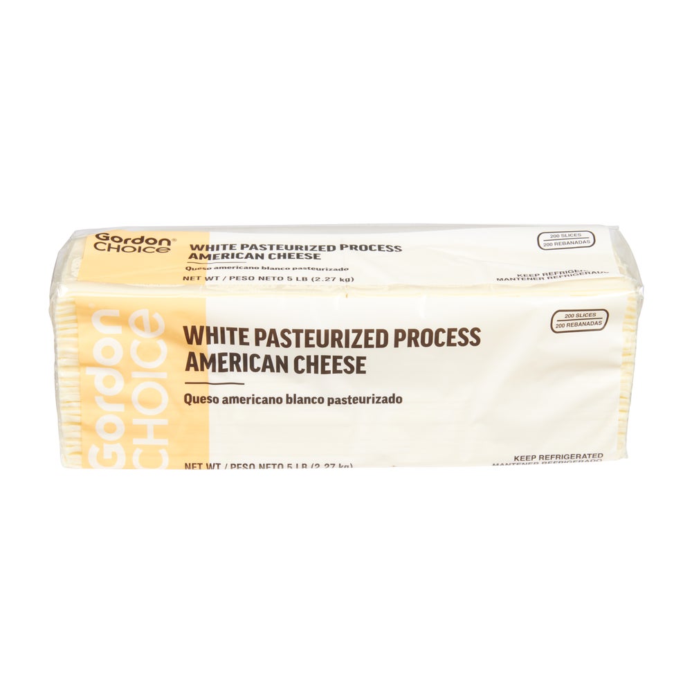 Gordon Choice Pasteurized Process White American Cheese, Sliced, 200 Count, 0.4 Ounce, 5 Lb Loaf, 4/Case