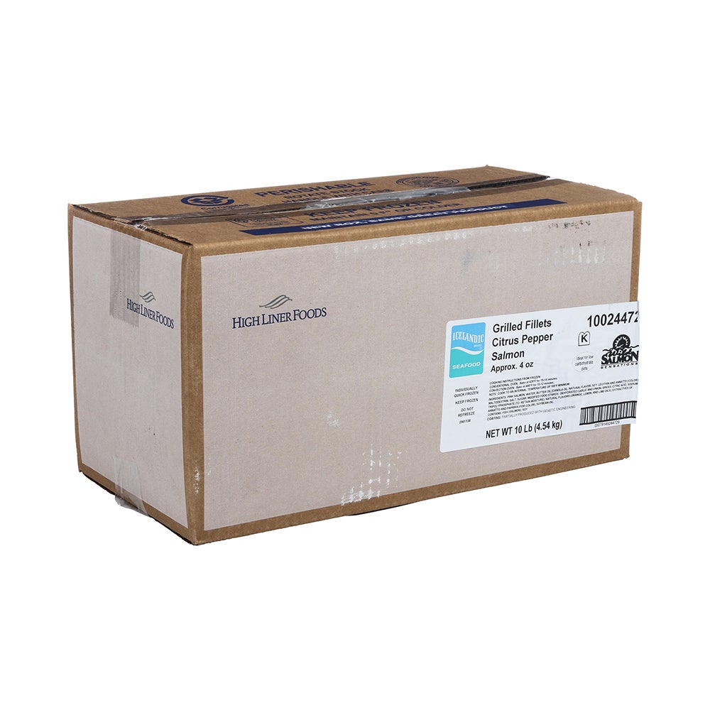 FPI Seared Citrus Pepper Glazed Salmon Fillets, Wild-Caught, Boneless Skinless, with Grill Marks, 4 Ounce, Raw, Frozen, 10 Lb Box, 1/Case