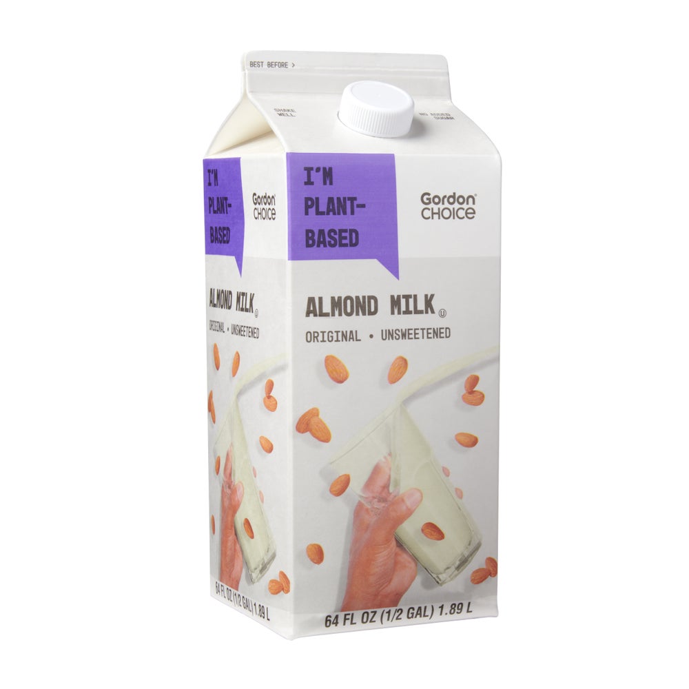 Gordon Choice Lactose Free Original Unsweetened Almond Milk, Refrigerated, 64 Fl Oz Each, 6/Case