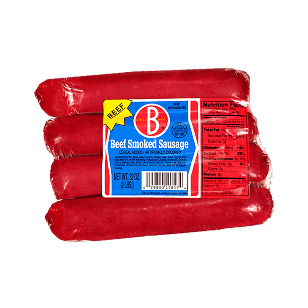 Circle B Smoked Beef Sausage, Fresh, 8 Ct Package, 12/Case
