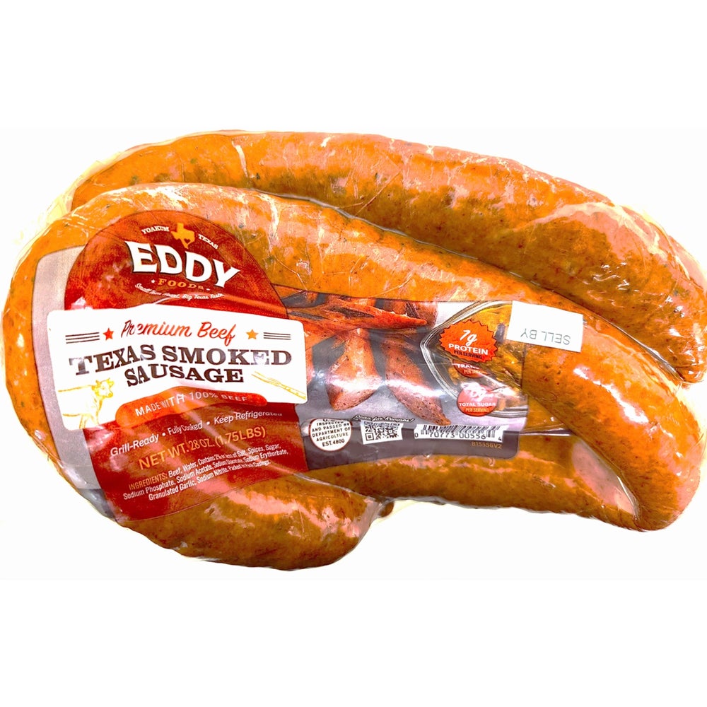 Eddy Beef Sausage, Rope, Cooked, Fresh, 1.75 Lb Package, 6/Case